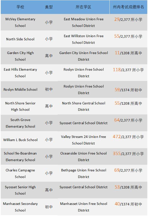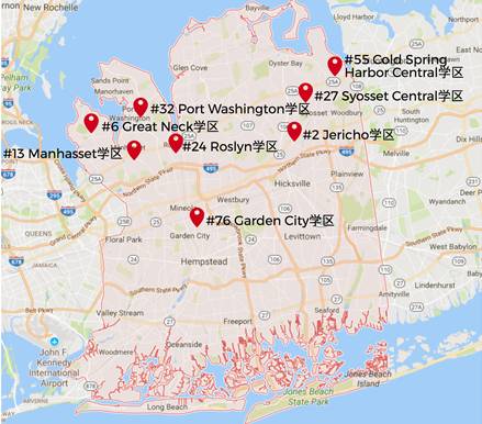 细心的读者不难发现,纳苏郡进入全美排名前100的学区大都位于纳苏郡的北部。虽然纳苏郡南部的学区没有入选全美前100名,纳苏郡南部也有不少优质的公立学校。
