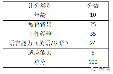 这应该是加拿大移民打分中最满足要求,最简单的打分系统了,在100分的打分标准中,只要满足35分就达到要求。